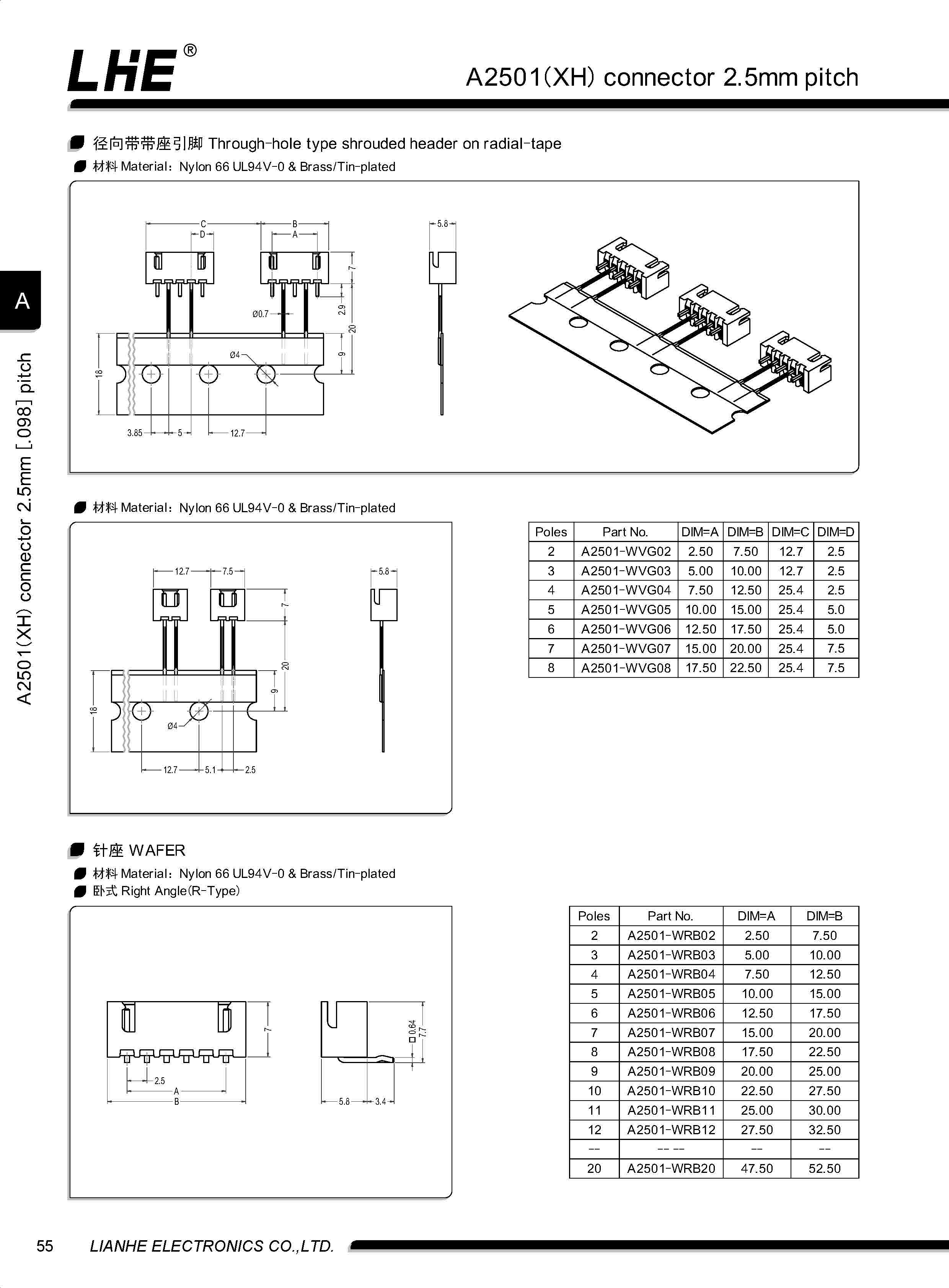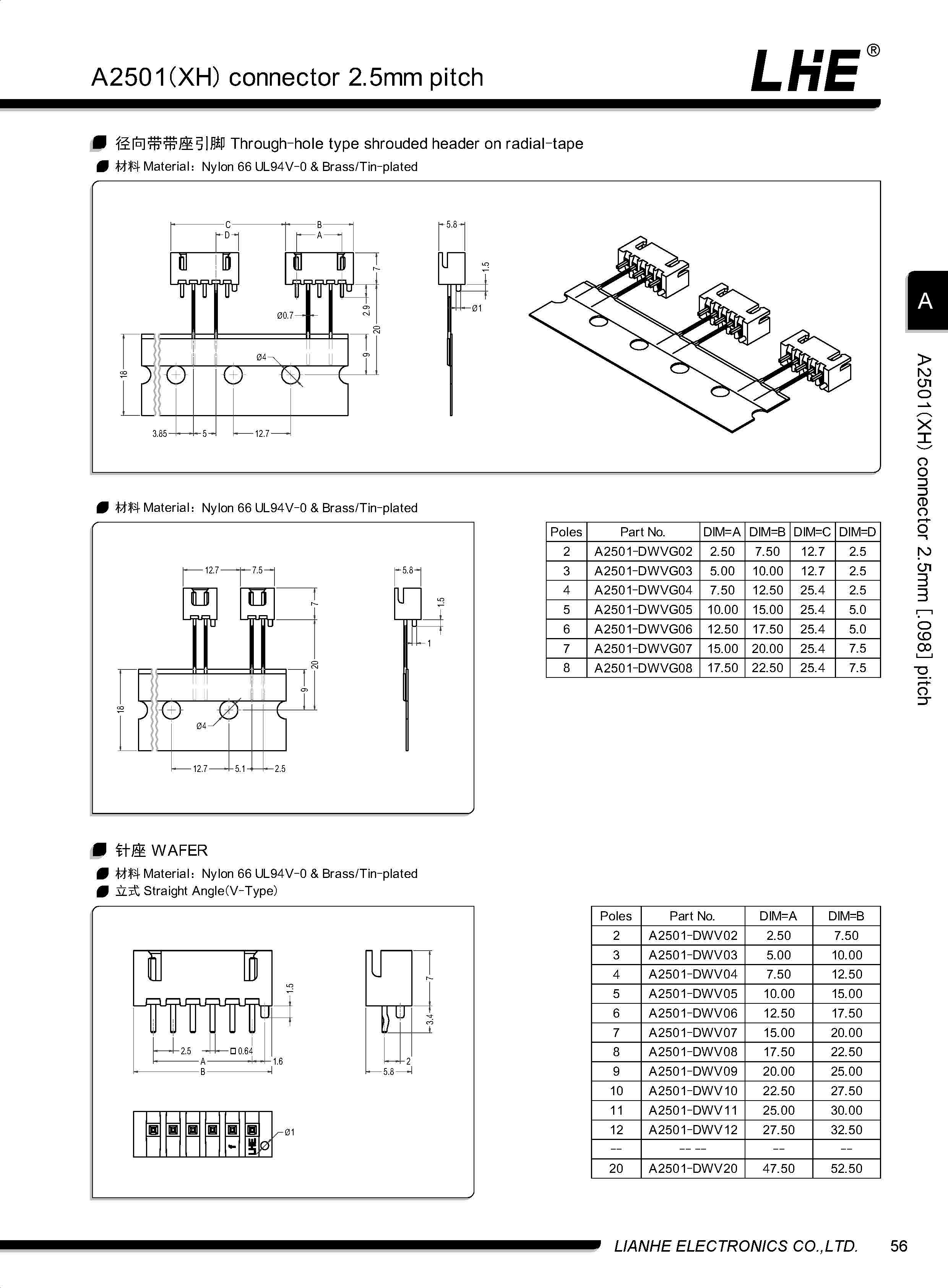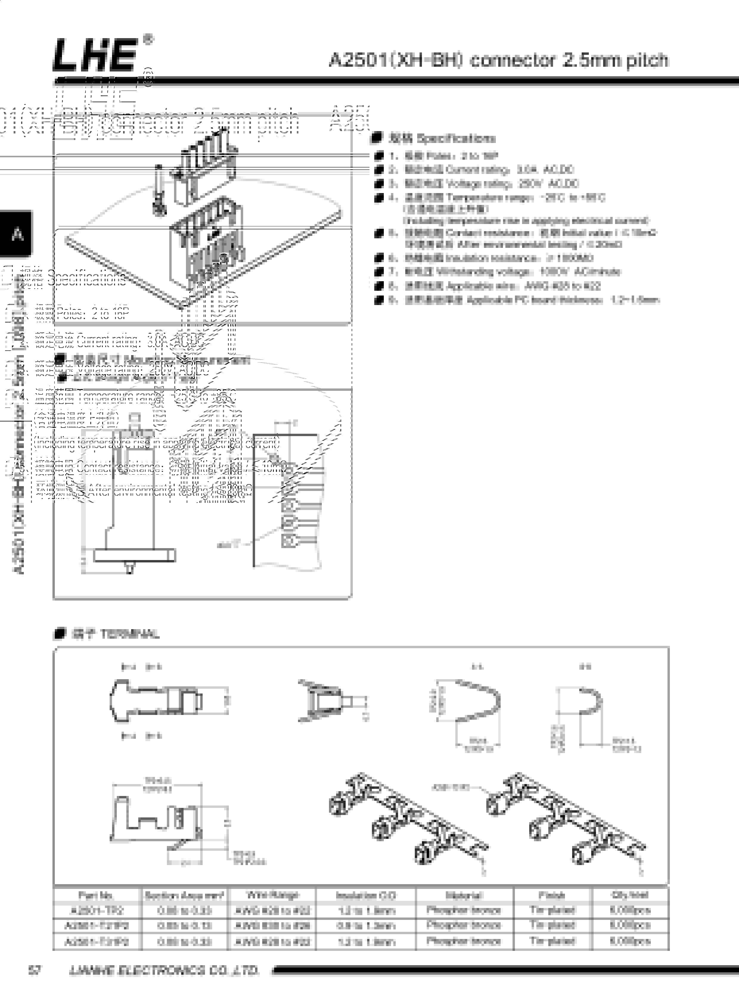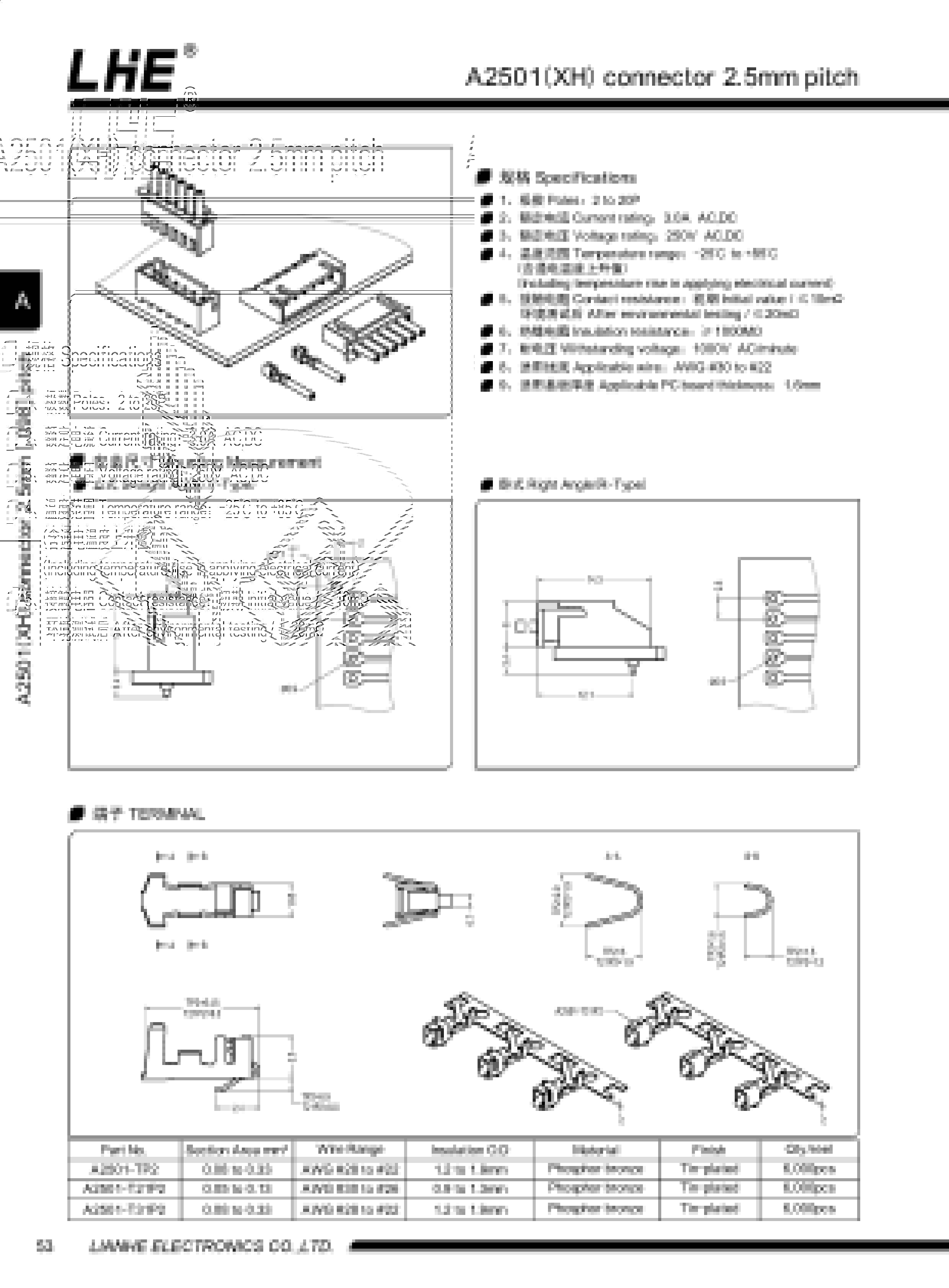 A2501(XH)系列间距 2.5mm,可替代JST-XHP 系列。包含胶壳 针座 端子 贴片,XH应用非常广泛,性能非常稳定,性价比也是非常的高,在这么多优势的特性下,成为市面上最常见最成熟的产品,国内厂家和国外产品基本无差别。